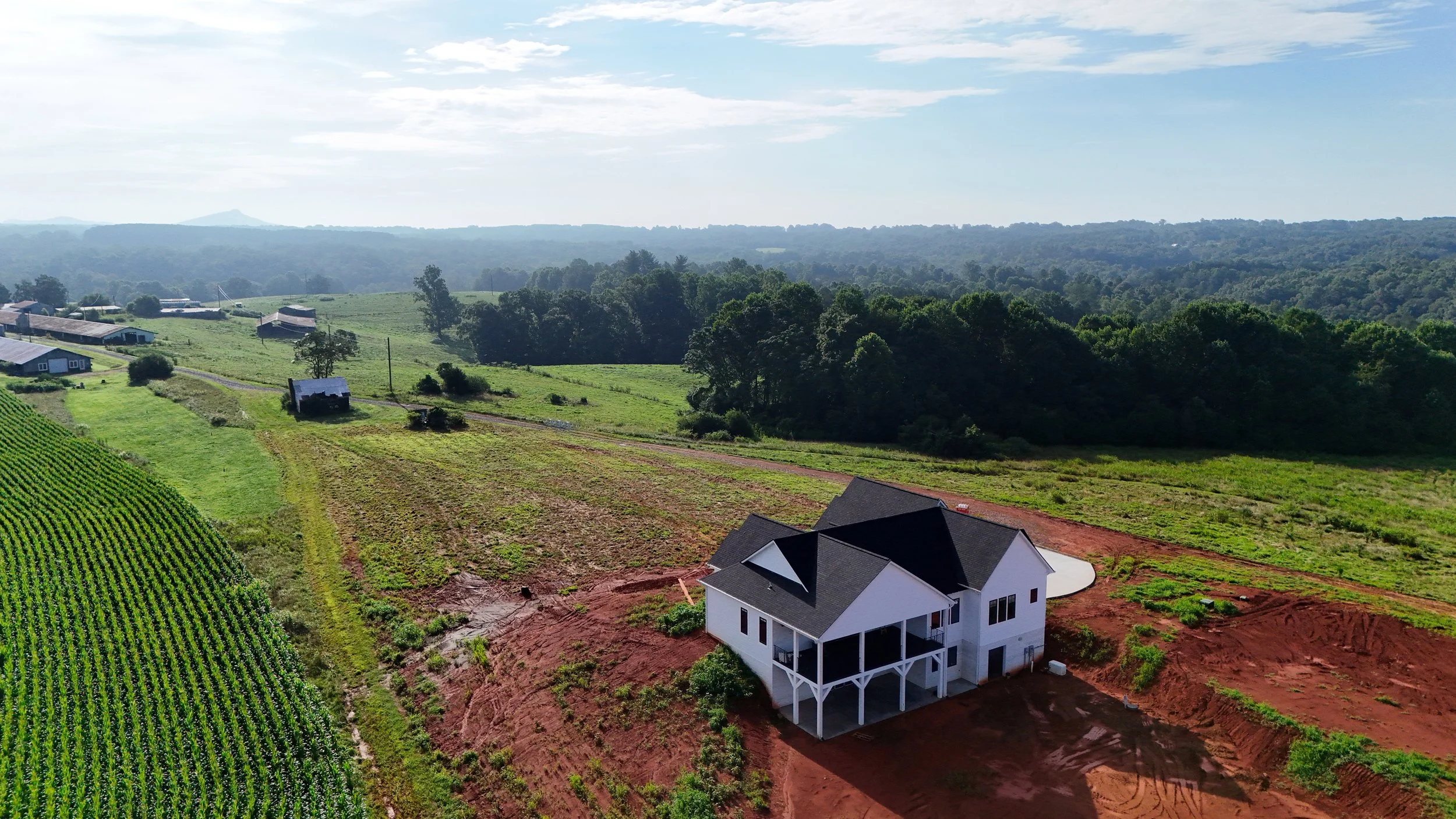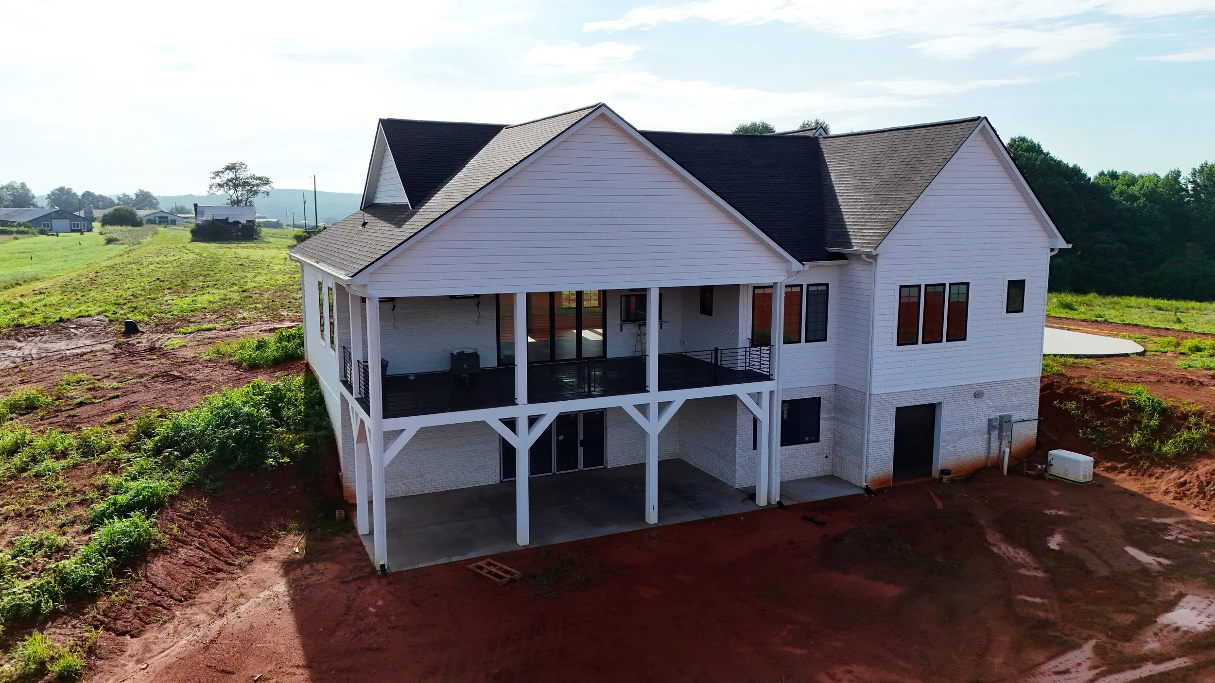 The Johnson Project was built in Dobson, North Carolina and totaled 2222 square feet. The home included 3 bedrooms, 3.5 bathrooms, a 2-car garage, a second floor bonus room (360 +/- square feet), a 2000 +/- square foot full walk-out basement with a Superior Wall System, a home generator system, a 2-story patio deck, and a rear golf cart/mower garage. This project was completed in August 2025.